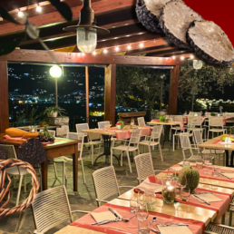 Ambiente suggestivo a lume di candela, vista su Portofino e valle dell’Entella insieme alla “Cucina dei 2 Mondi”