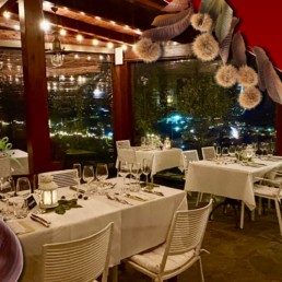 Ambiente suggestivo a lume di candela con vista su Portofino, materia prima dell’orto e la “Cucina dei 2 Mondi”. Non riusciamo sempre a garantirvi un tavolo con vista perchè è molto richiesto.